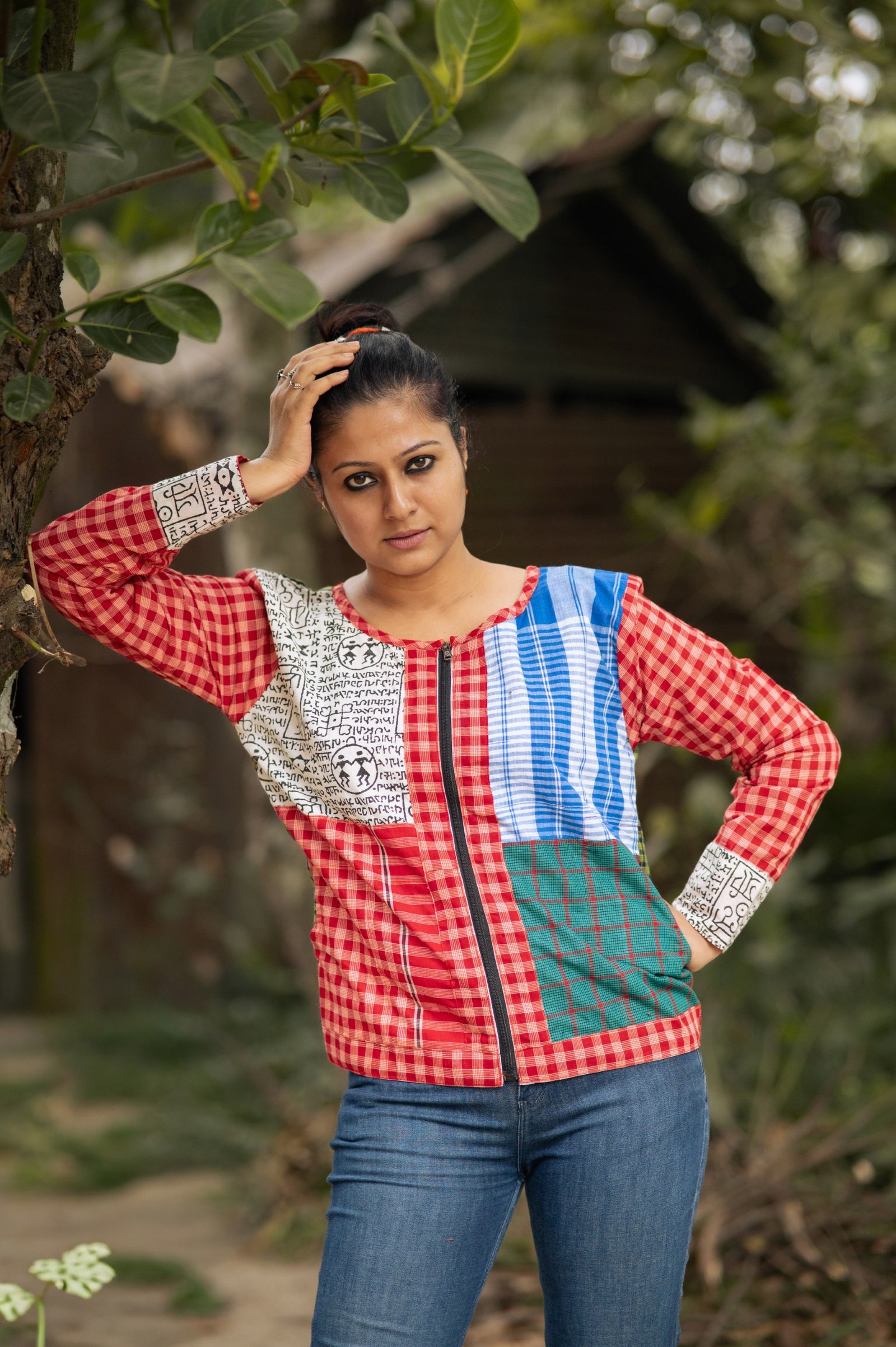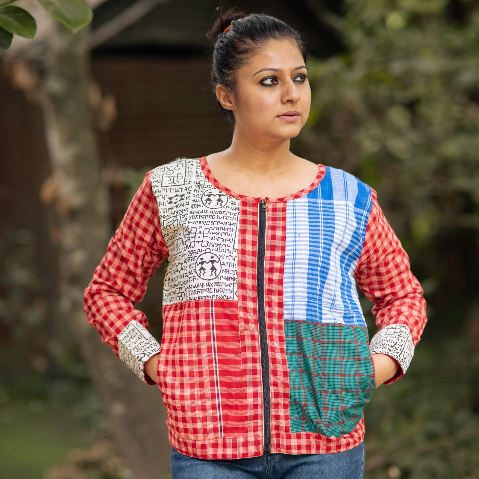 Crafted with a mix of gamchha and script fabric patchwork, this cosy layer brings culture, colour, and comfort together. Soft warmth on the inside, character on the outside — finished with practical pockets for everyday ease.