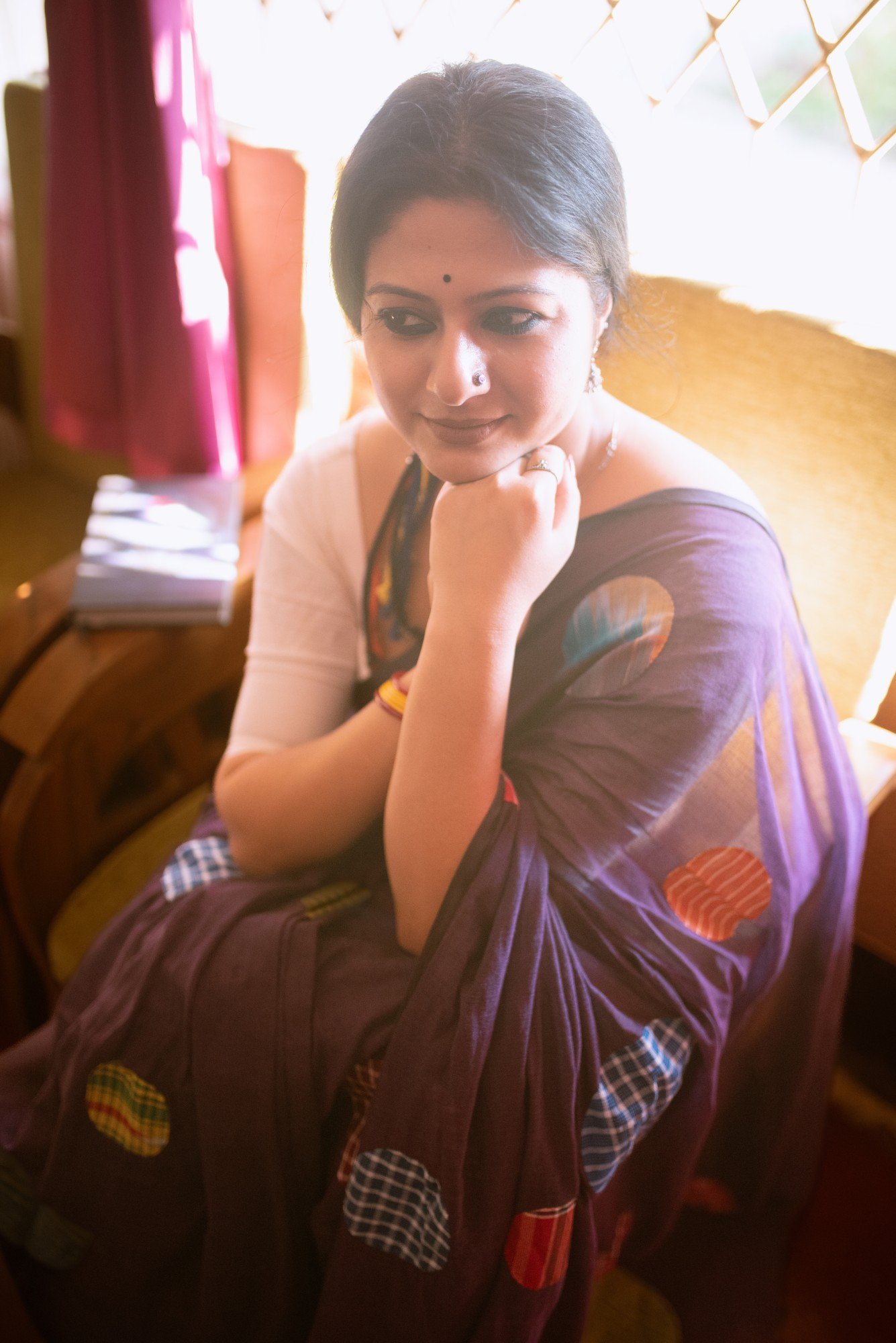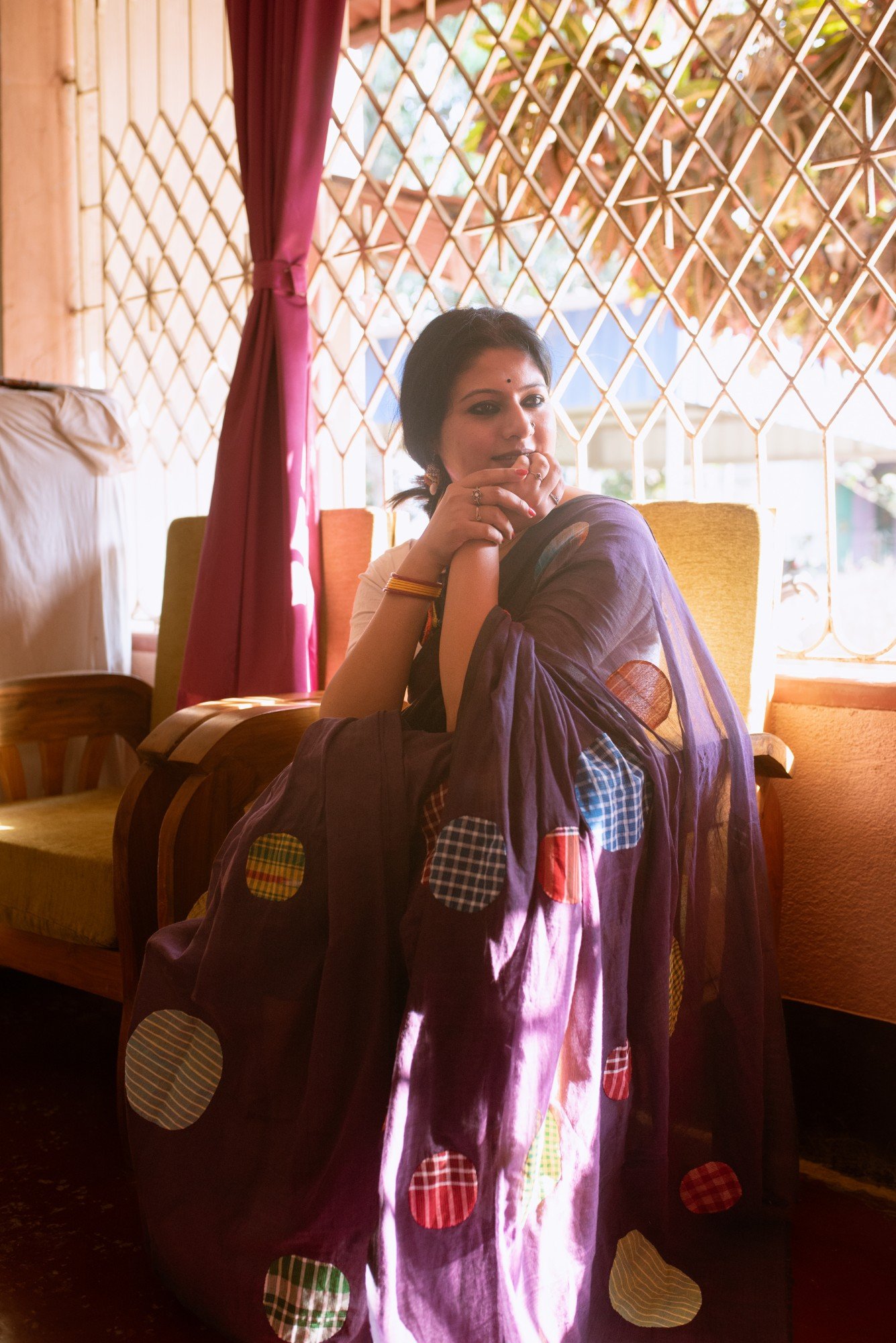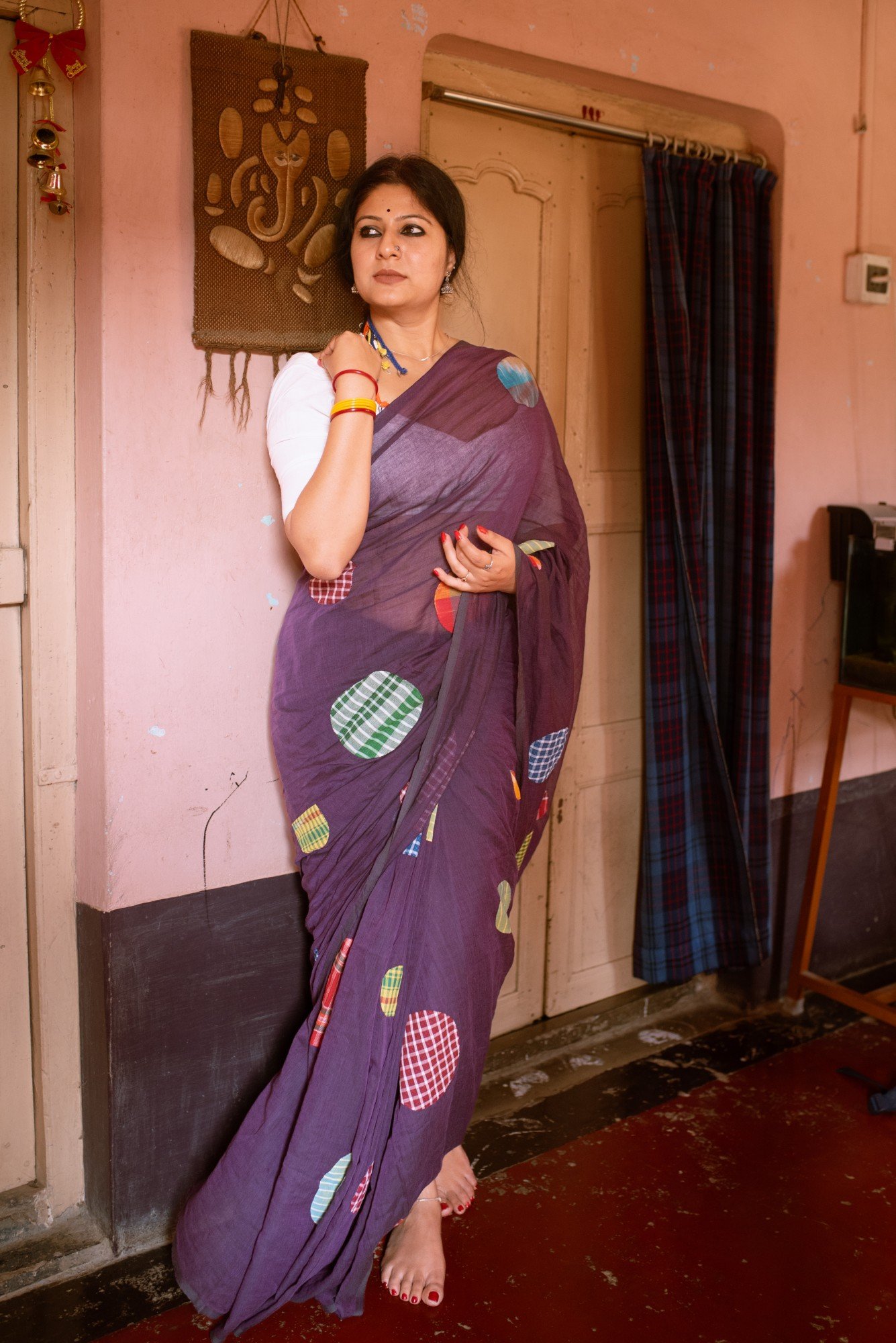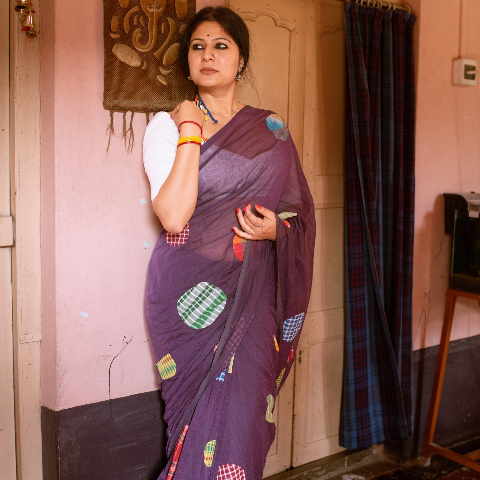 Product description : Pure mul cotton of Phulia, with an intricate applique work of Upcycled Gamchha patches, crafted and stitched by artists of Nadia.