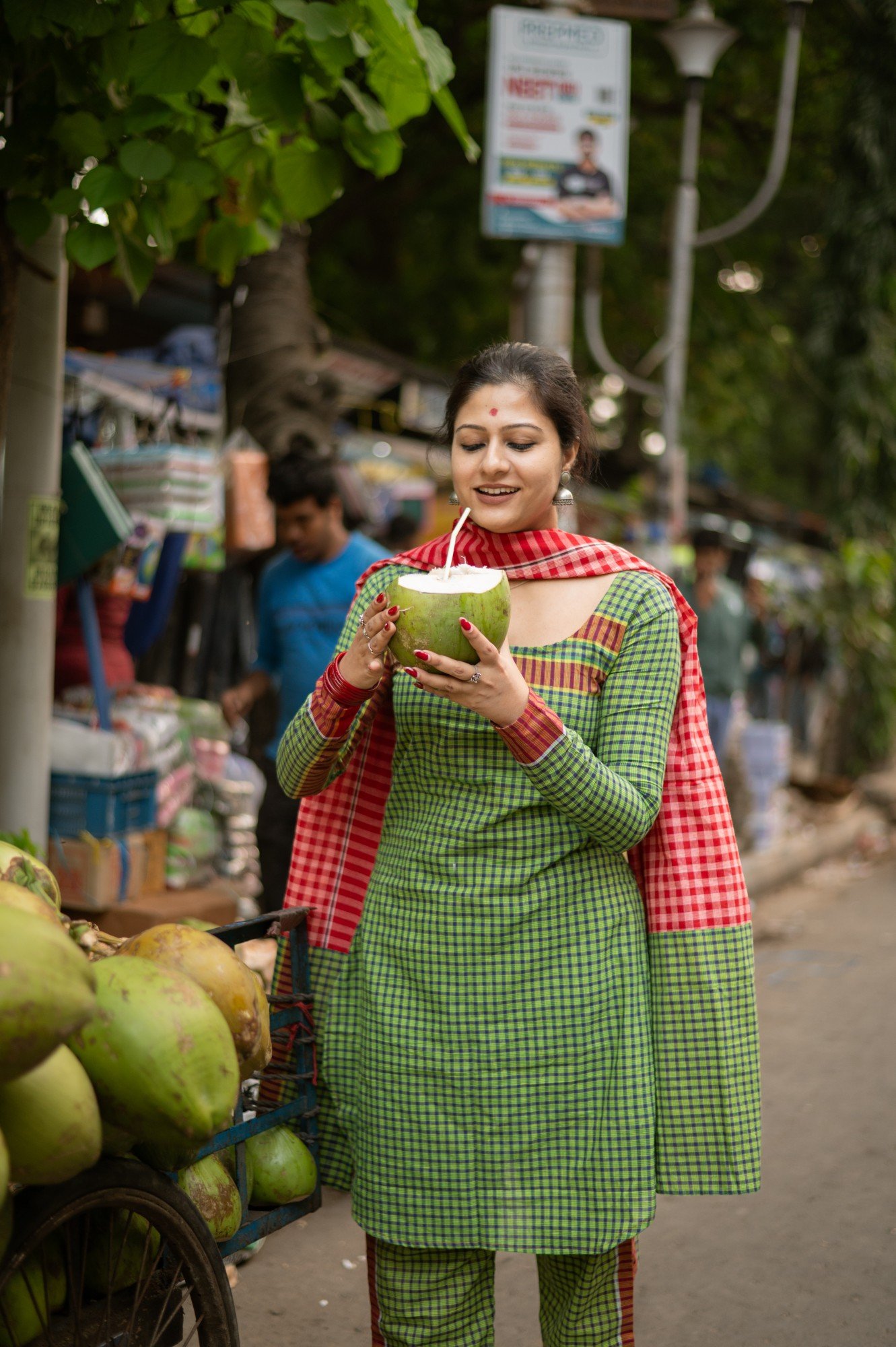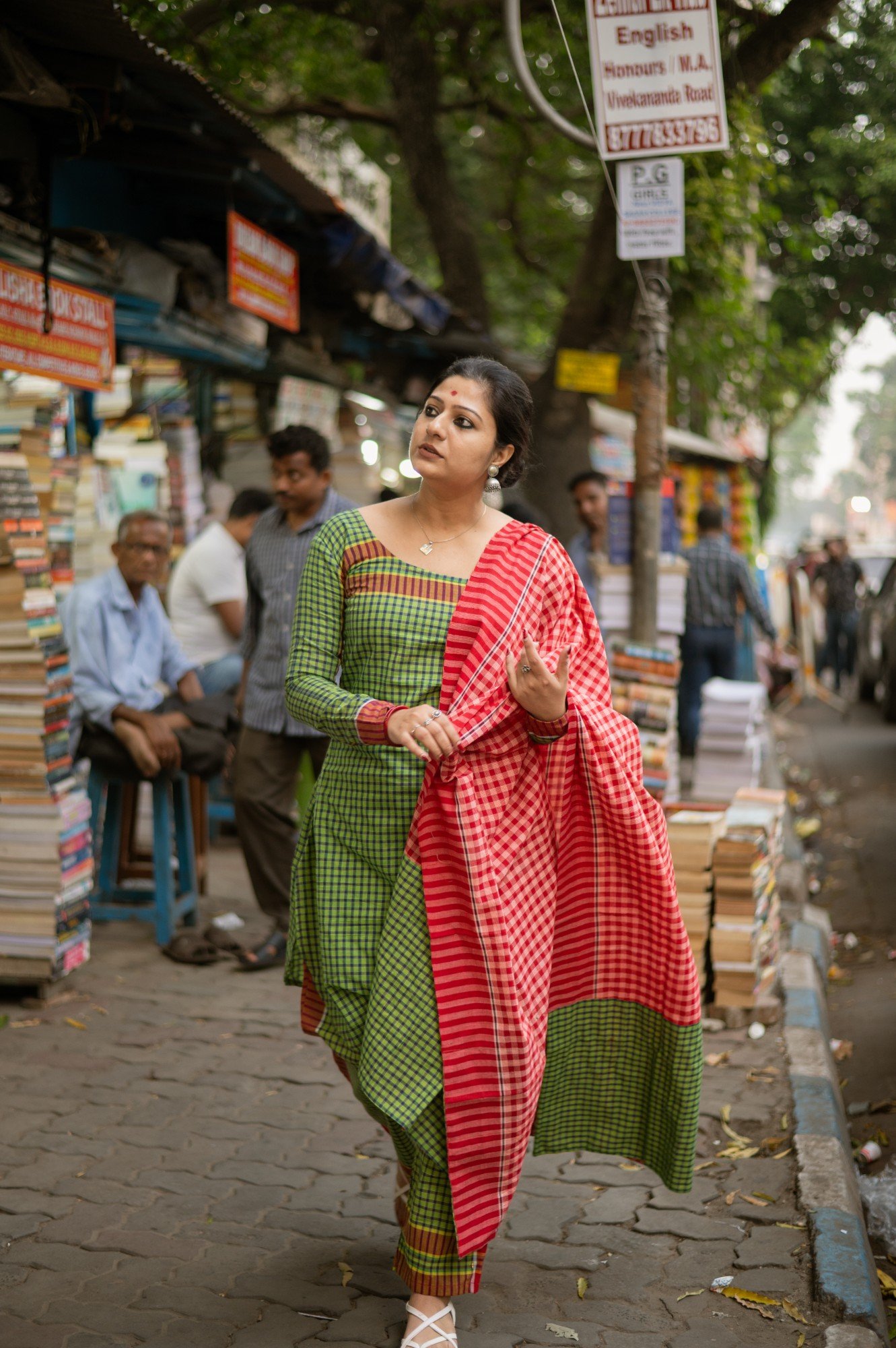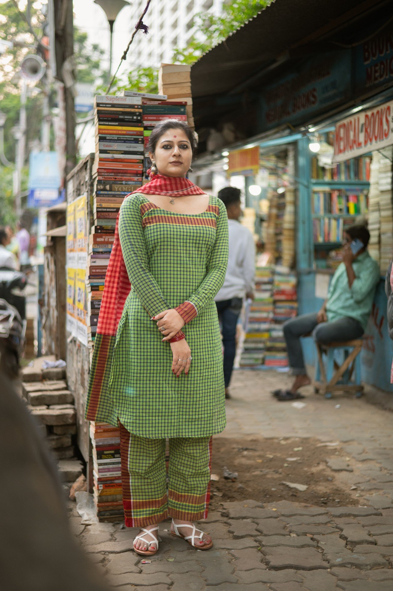 Product description : Kurta made from indigenous handloom gamchha featuring a simple round neck with curved edges. Paired with straight-fit pants for a clean silhouette. The set is completed with a solid red gamchha dupatta for a bold contrast.